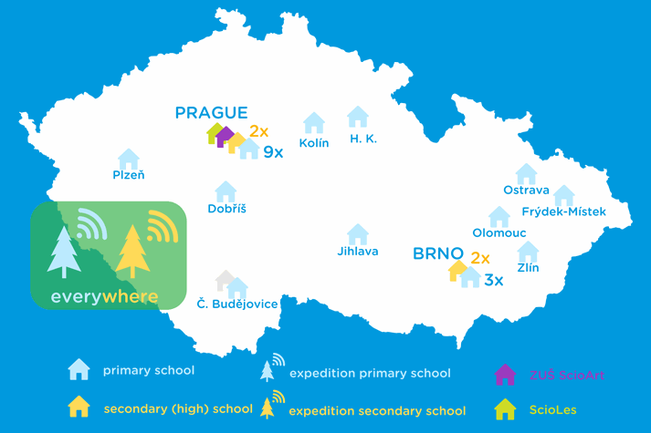 The first ScioSchool (ScioŠkola) was established in Prague in 2015. It’s innovative concept immediately captured the attention of both parents and educators. This resulted in a quick expansion. In 2026, our network encompasses 25 schools all across the Czech Republic. This includes three upper secondary (high) schools and two unique location-independent schools called expedition schools. We are certain that our network is going to expand even further in the years to come.
