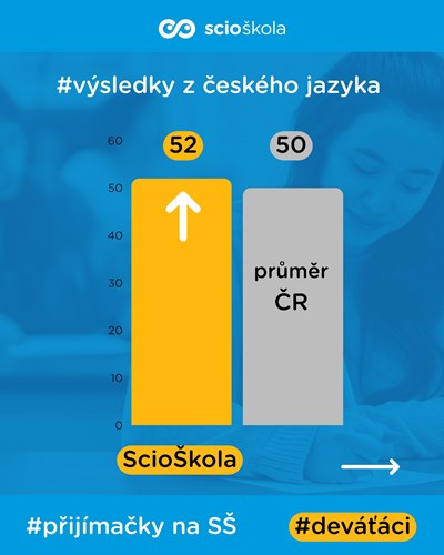 Percentil 52 v českém jazyce znamená, že 52 % všech účastníků zkoušky (z jiných škol a víceletých gymnázií) dopadlo hůře než ScioŠkoláci.